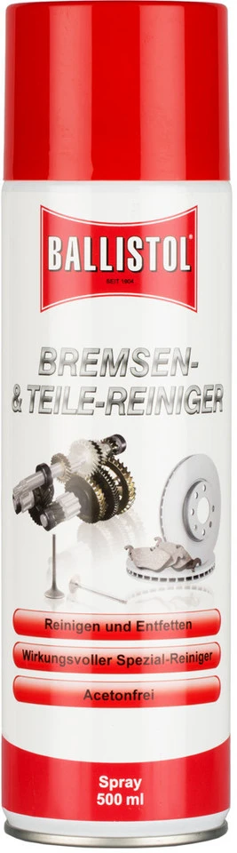 El limpiador de frenos y piezas Ballistol es adecuado para limpiar y desengrasar piezas de máquinas sucias, aceitosas o grasientas, piezas industriales, frenos y discos de freno. El limpiador de piezas también puede ser utilizado con confianza para pastillas de freno. Elimina el aceite, la grasa, la suciedad e incluso los aceites secos y resinosos. El limpiador de piezas se seca sin dejar residuos y tiene una agradable fragancia y una alta compatibilidad de materiales. El limpiador de frenos Ballistol también se puede usar en pinturas y en la mayoría de los tipos de plástico y goma sin ningún problema.