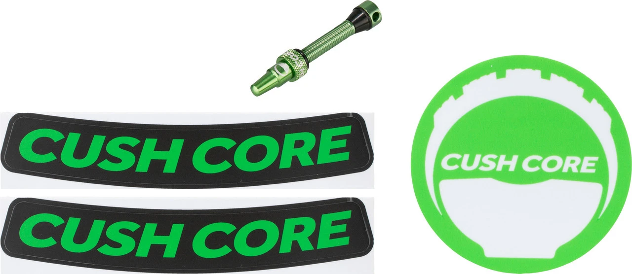 1 x Herramienta para válvulas CushCore2 x Calcomanía de llanta CushCore1 x – Calcomanía con el logotipo de CushCore