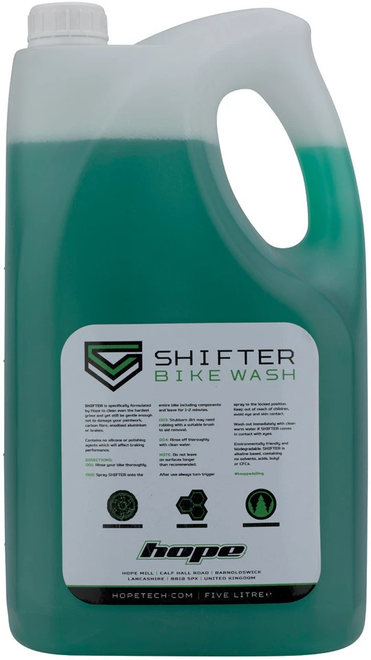 El limpiador de bicicletas Shifter de Hope combate con éxito incluso la suciedad más resistente sin atacar las superficies anodizadas o los frenos de disco.