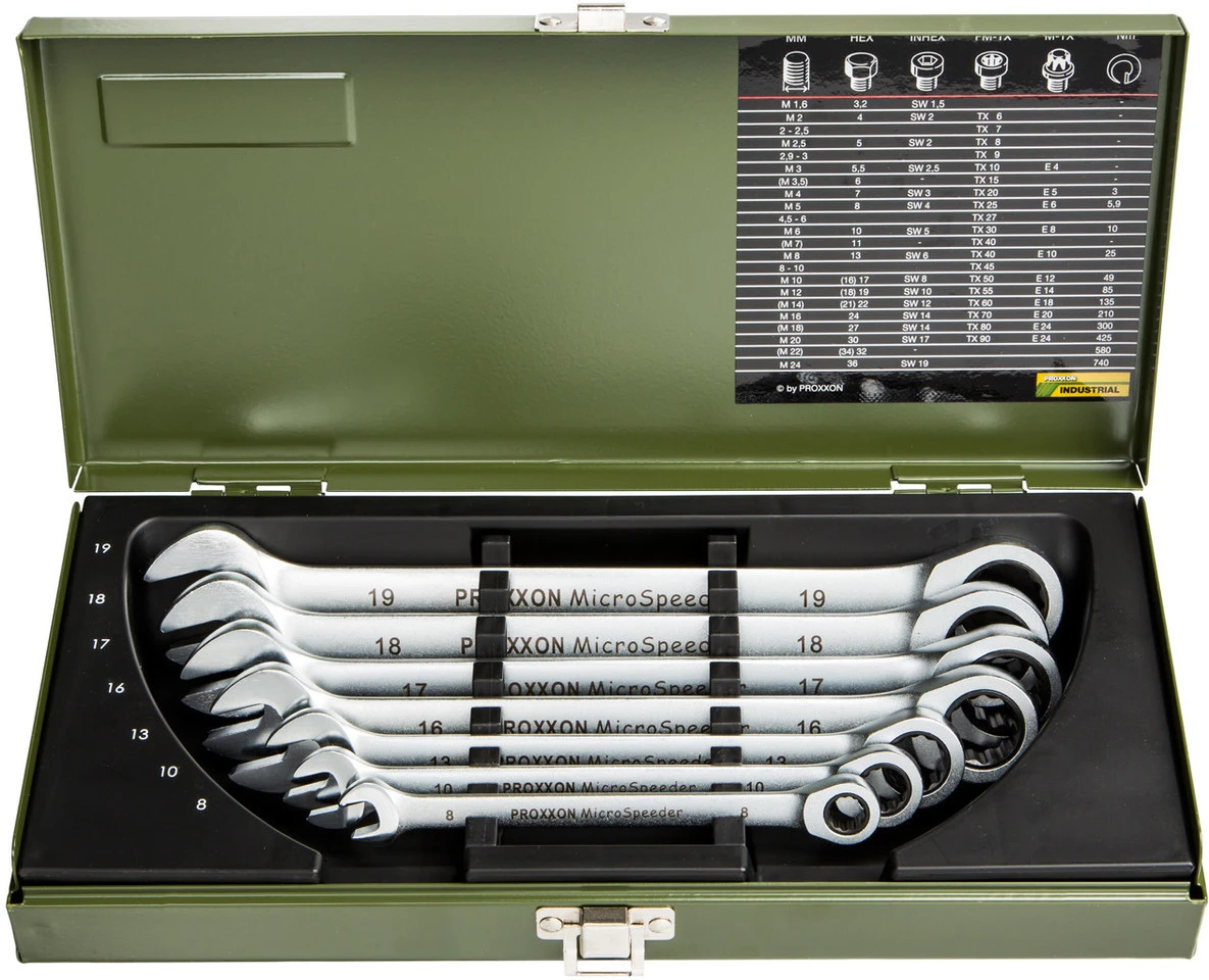 Volumen de envío:7 x Llave de boca y anillo Proxxon Microspeeder1 x Caja de acero Proxxon