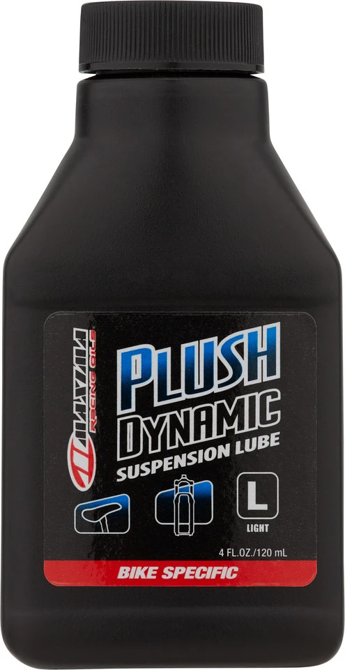 El aceite de horquillas RockShox Maxima Plush Dynamic Light, con una viscosidad de 7,5 WT, reduce la fricción y permite un rendimiento duradero y constante. Se utiliza en la unidad del tubo de inmersión de varias horquillas de suspensión, así como en tijas de sillín Reverb XPLR. También se puede utilizar donde normalmente se usa 0W-30.