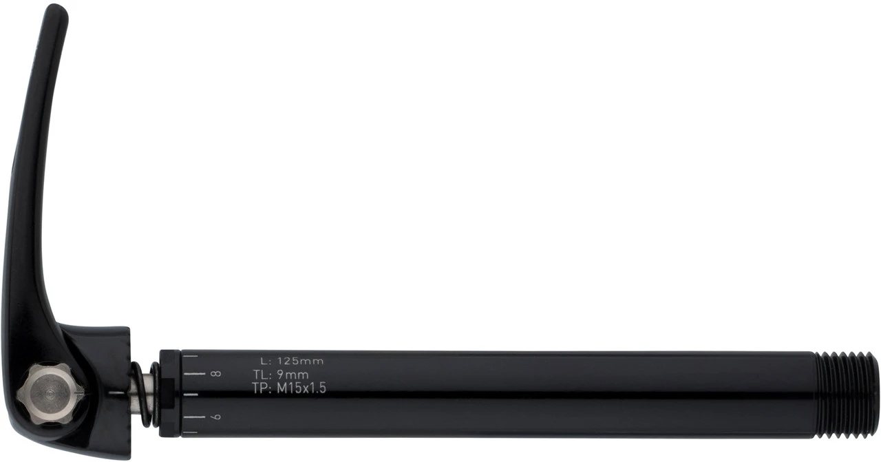 Datos técnicos:Campo de aplicación:bicicleta de rutaTamaño:12×100 / 15×100 mmLongitud del eje:125 mmLongitud de rosca:9 / 12 mmPaso de rosca:M12x1,50 / M15x1,50Modelos:12 x 100 mm: