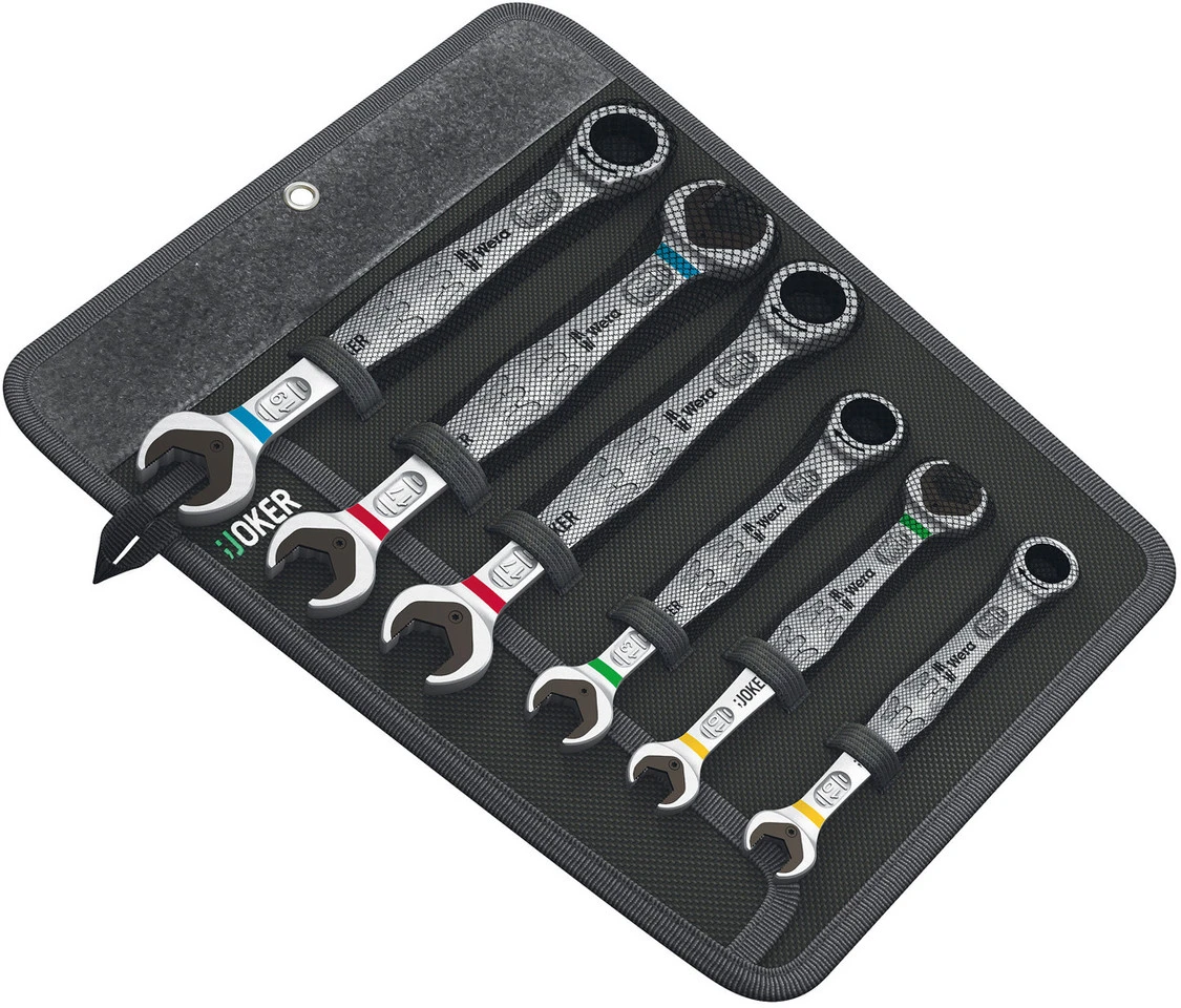 Volumen de envío:4 x Llave de boca con carraca de anillo Wera Joker (10 / 13 / 17 / 19)2 x Llave de boca doble Wera Joker Double (10 / 17)1 x Bolsa de almacenamiento